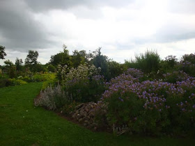 Ach, es ist schon eine Schwelgerei in Hochsommerfarben und -formen...Allerdings wird es auch in diesen Beeten nächsten Sommer nicht mehr so viele Stauden geben: Die Spornblumen (Centranthus ruber) z. B. sind wegen ungebührlichen Versamens inzwischen komplett rausgeflogen...