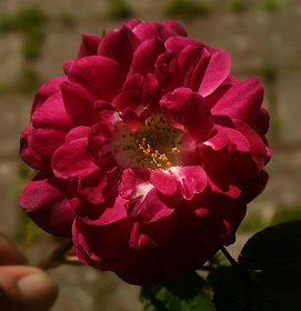 "Red Damask" (falsch), sommerblühende Strauchrose